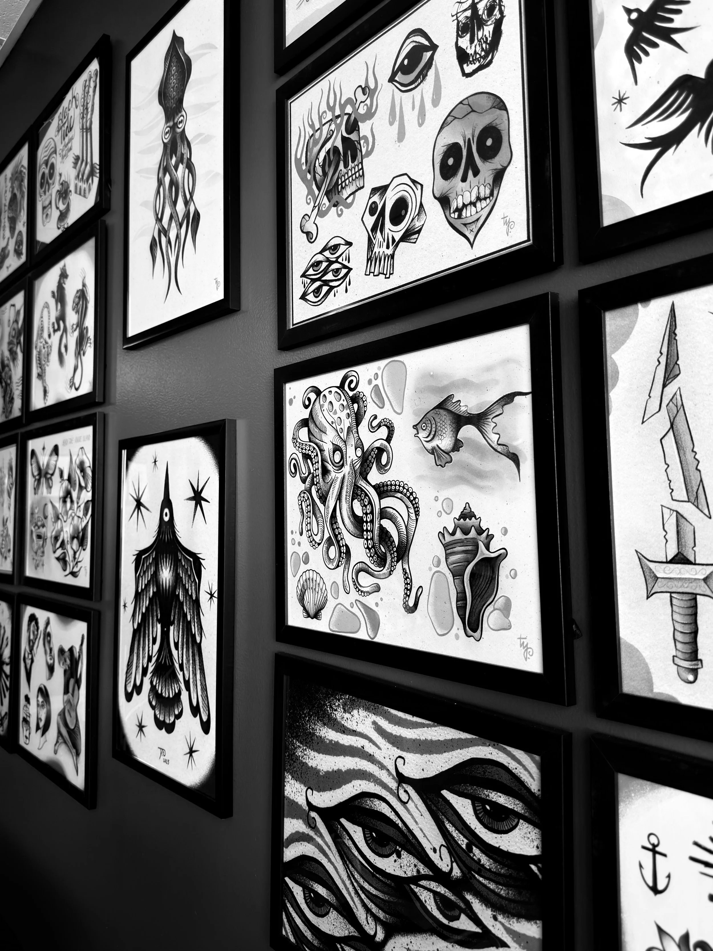 I’ve got a ton of flash and other artwork on the walls at the shop, but theres still space left that I want to fill. It’ll get there, but I need to get more frames, I’ve got a pile of things waiting to go up on the wall.