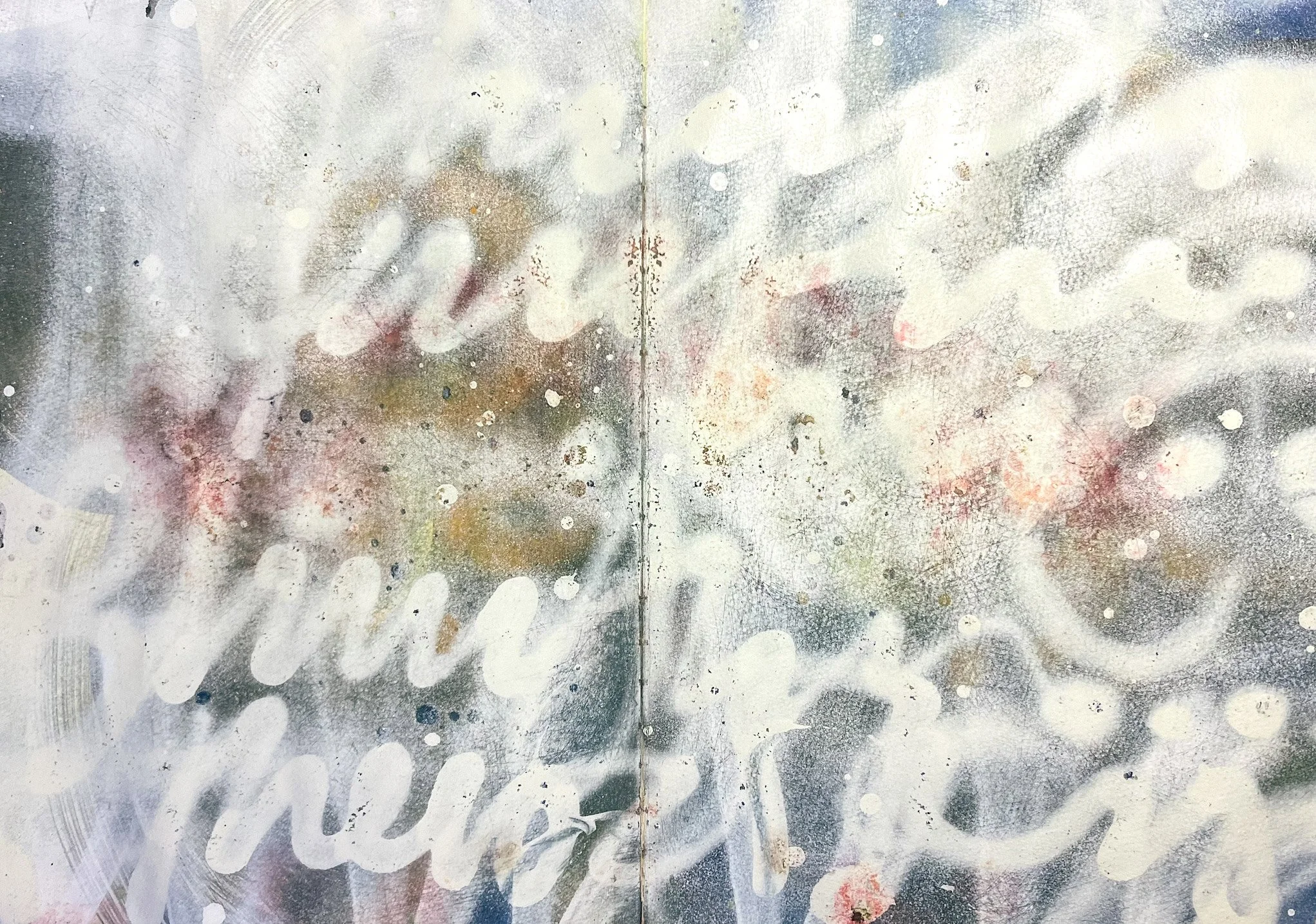 Sketchbook spread 0225 Mar 28 Written By Ty Paulhus View fullsize Spread from a moleskine sketchbook w/ watercolor paper. Spraypaint, acrylic, ink on paper. Ty Paulhus http://typaulhus.com